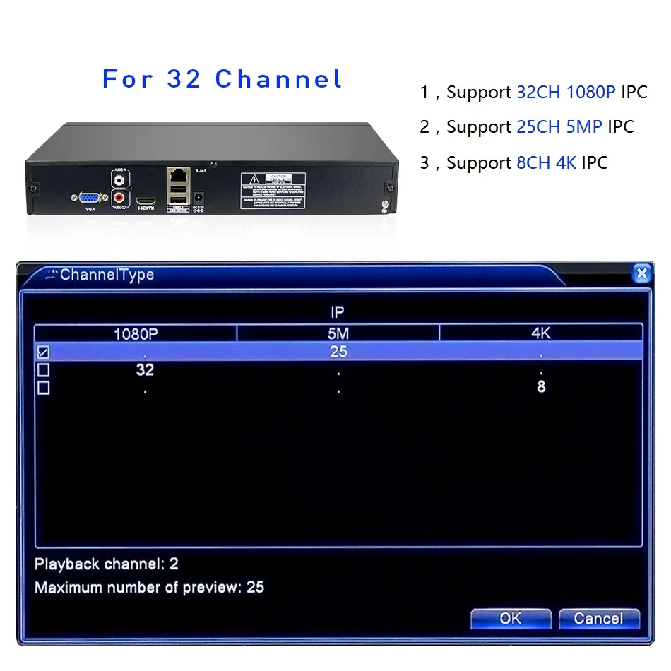 Hiseeu H.265 2HDD 32CH CCTV NVR 960P 1080P 3M 5M DVR Network Video Recorder Onvif 2.0 for IP Camera